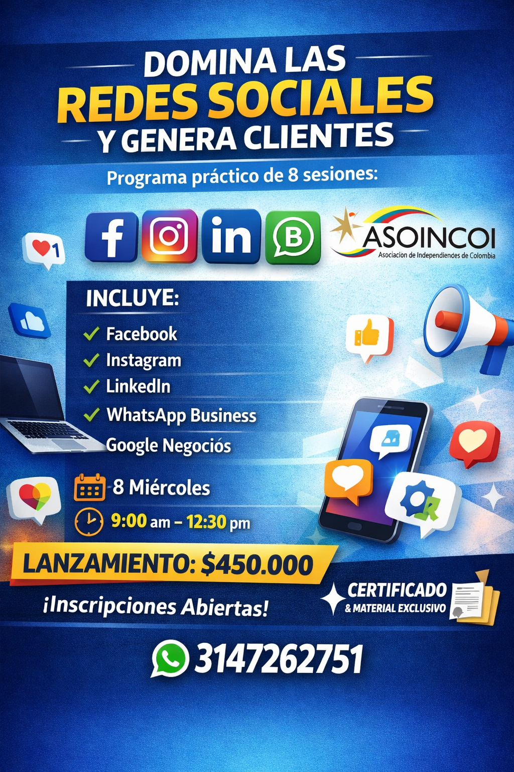 “Aprende a crear y manejar tus redes sociales desde cero y conviértelas en una máquina de clientes